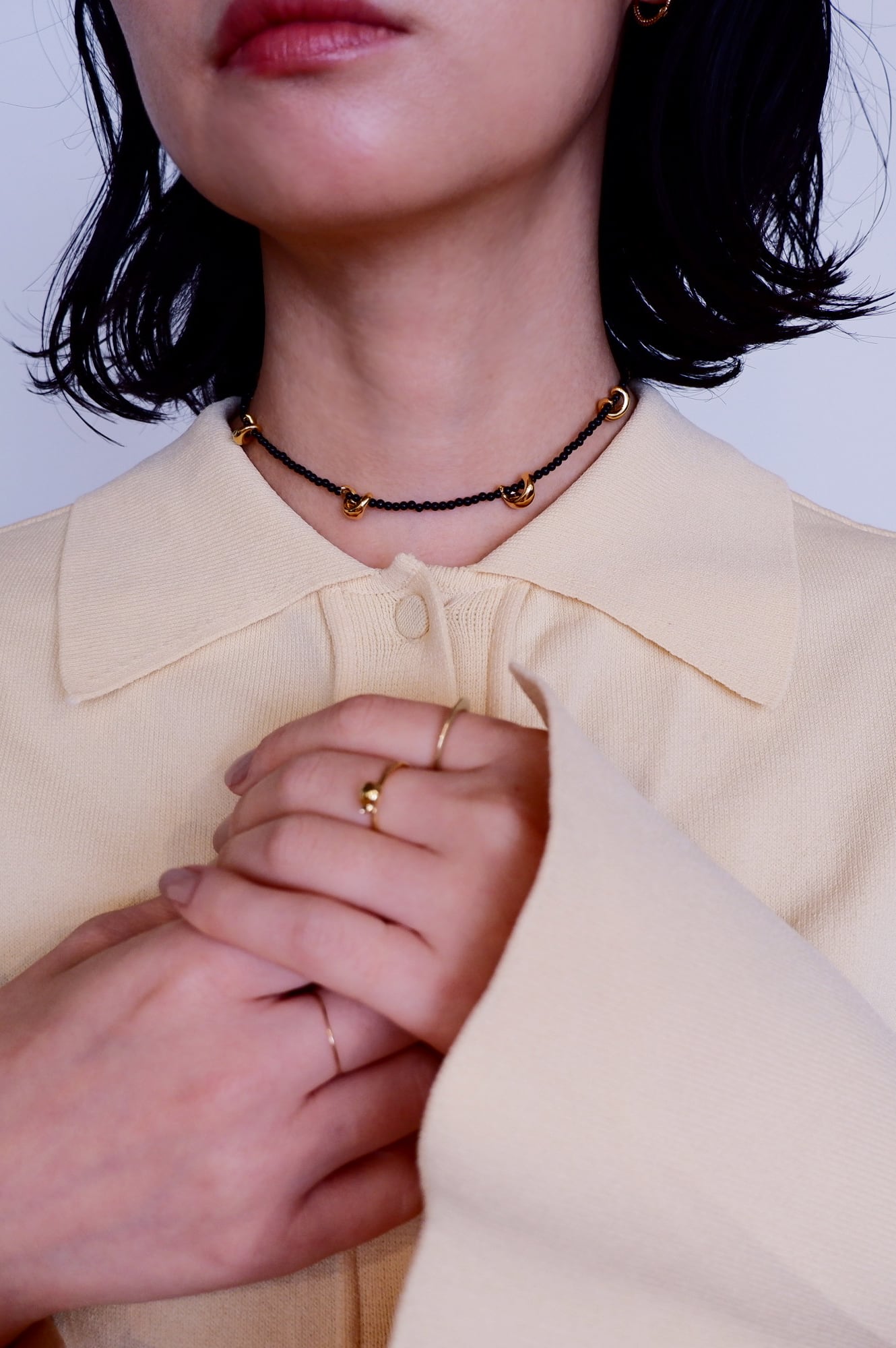 wave 4ネックレスに比べるとオニキスのビーズのサイズが小さいため繊細なイメージです。
