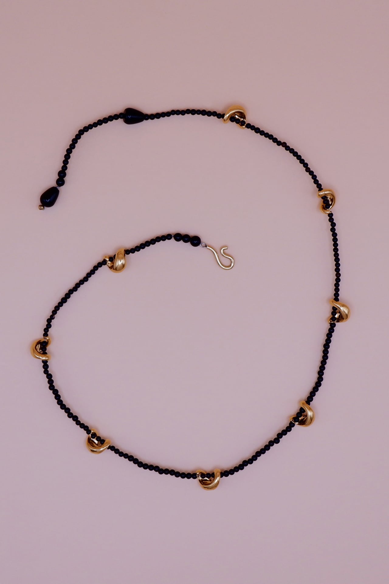 オニキスのブラックがモードなイメージ+艶感のあるwaveなシルエットモチーフを組み合わせ柔らかさとモード感のあるネックレスが仕上がりました。