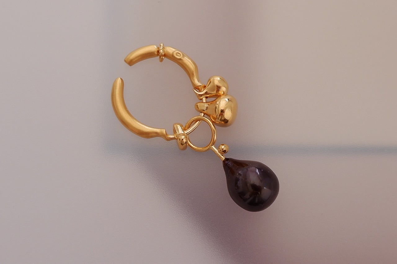フルーツの曲線をイメージしパーツが一つ一つが動くような構造にしたシリーズのイヤーカフです。