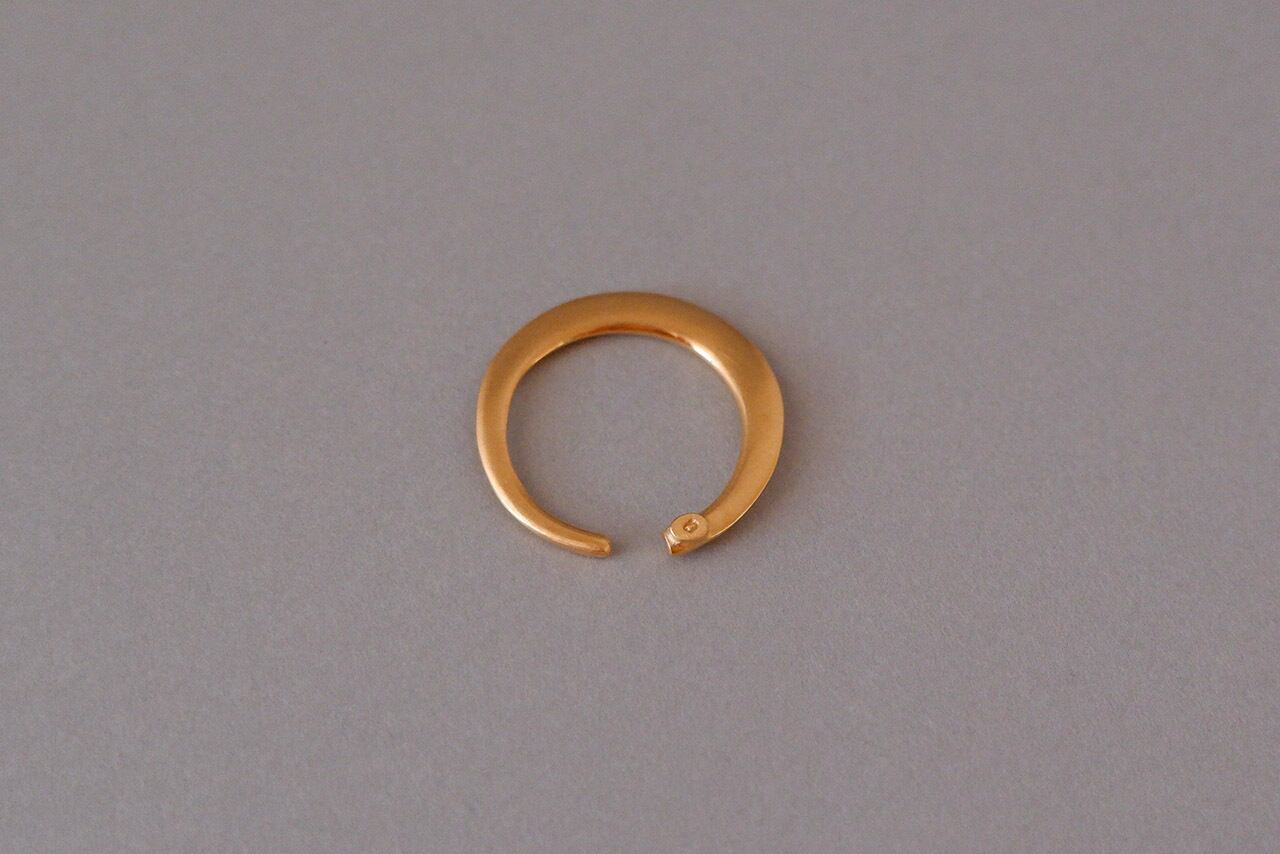 三日月型のシンプルな形のリングですがつける向きで見え方が変わりどんなリングとも合わせやすく、表と裏でマット加工と鏡面加工をしていてその日の気分でつけ方を色々とお楽しみ頂けるコーディネートには欠かせないアイテムになりそうです。